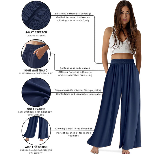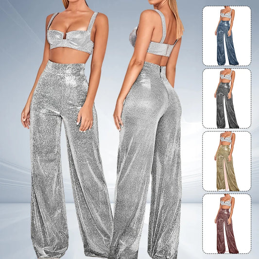 Metallic Sparkly Wide Leg Pants Women Elastic High Waist Glitter Sequin Palazzo Pants Casual Loose Party Clubwear Long Trousers