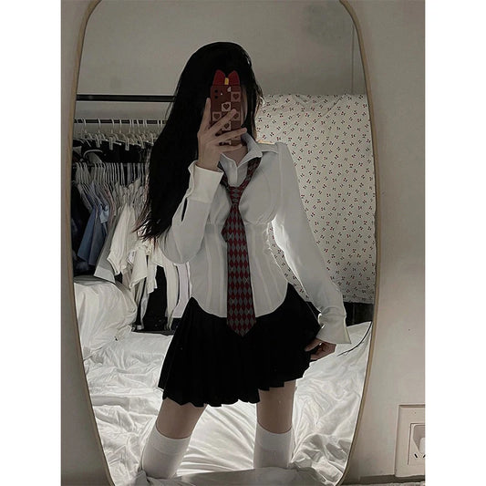 Y2K White Shirts Women Streetwear Tunic Long Sleeve Crop Tops Students Jk Preppy Korean Fashion Basic Slim All Match Blouses New