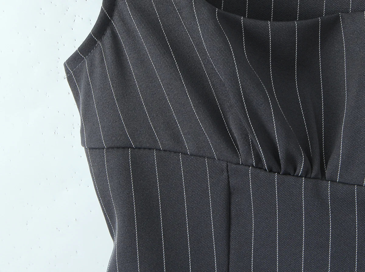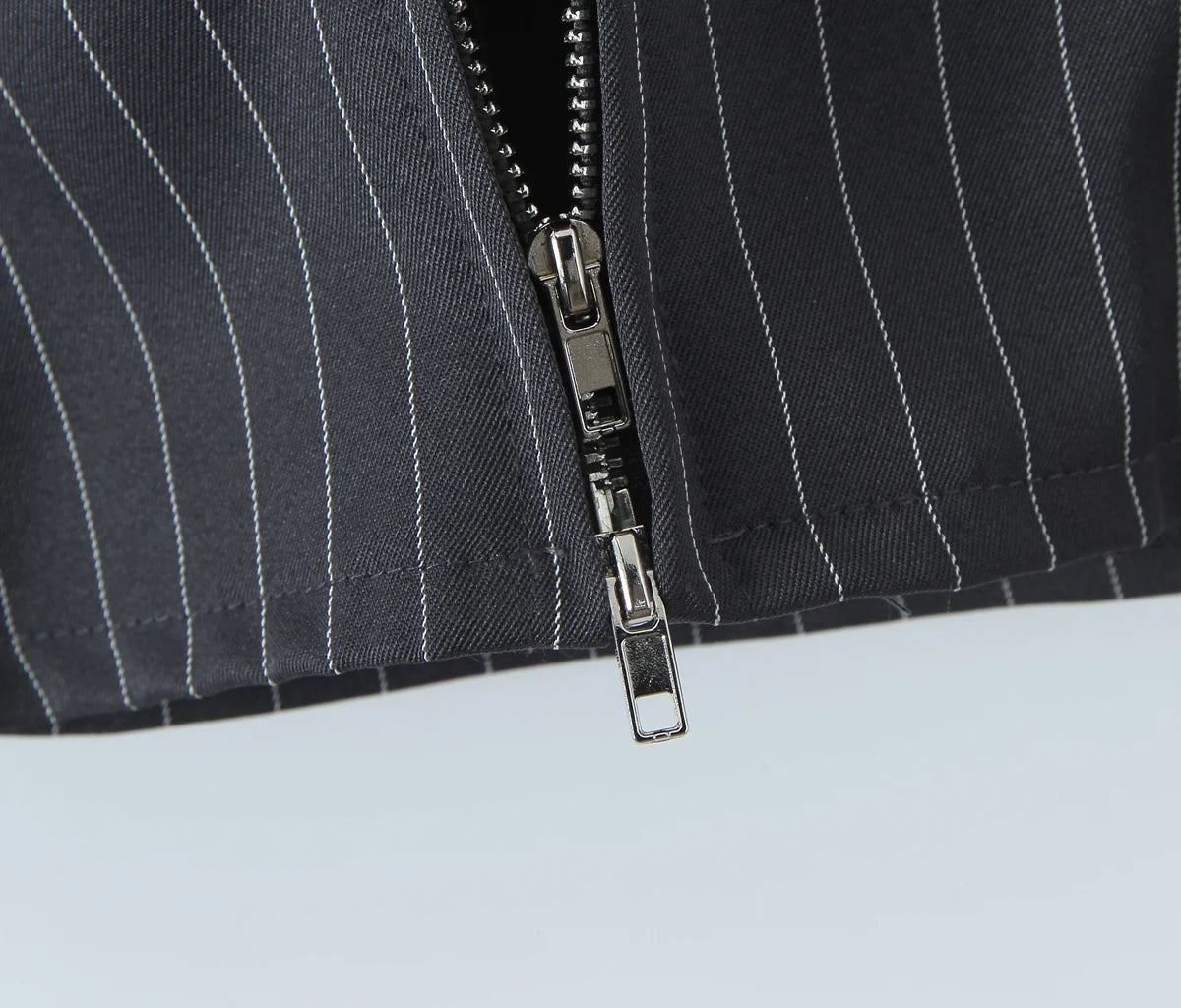 2025 Sexy Striped Square Collar Short Puff Sleeve Shirt Women Front Ruched Chest Double Zip up Front Slim Waist Crop Tops
