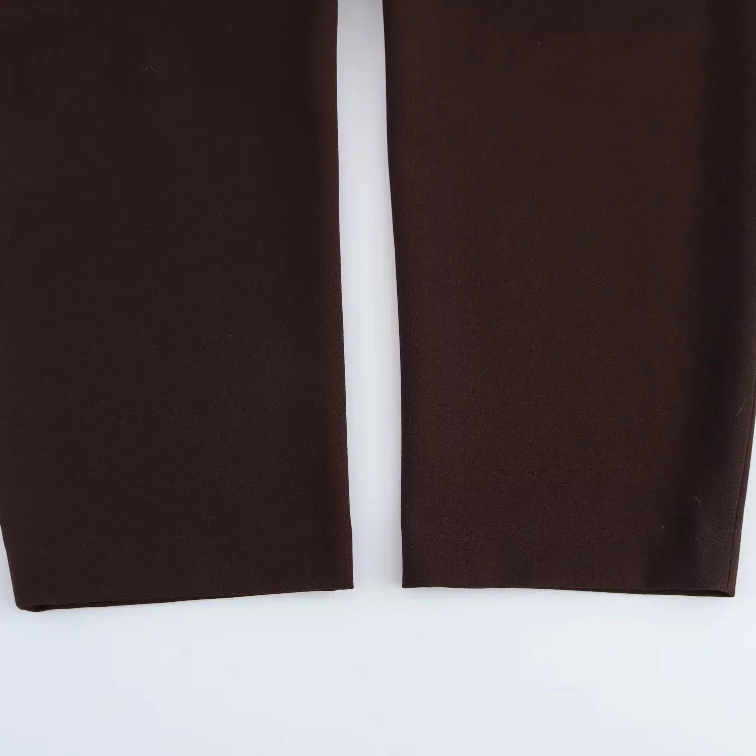 KONDALA 2025 Fall Winter Brown Elegant Office Lady Suits Fashion Shrug Pockets Blazers Elegant Zipper Skirts Chic Baggy Pants