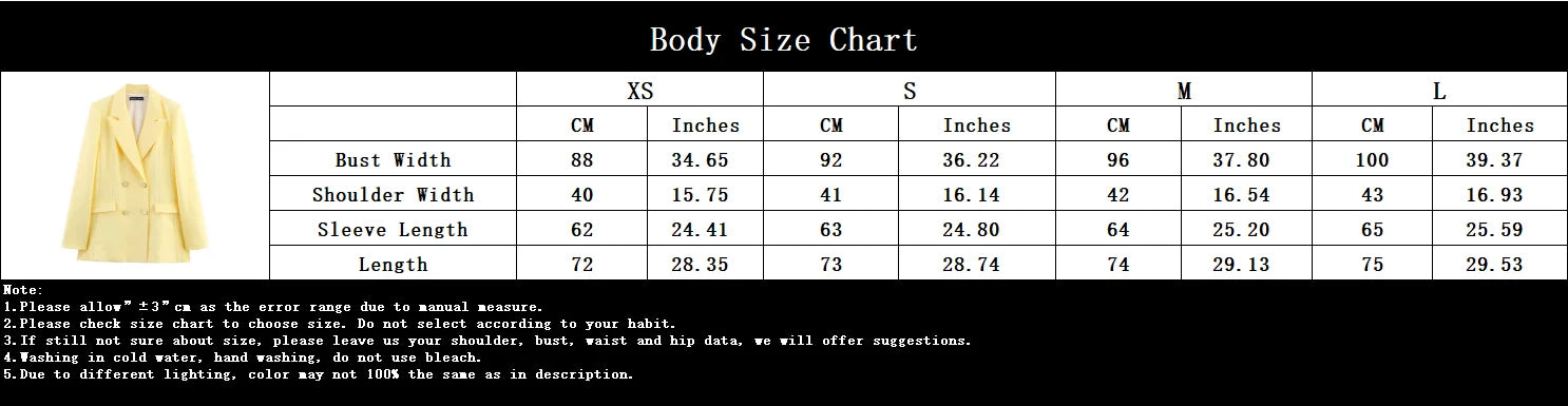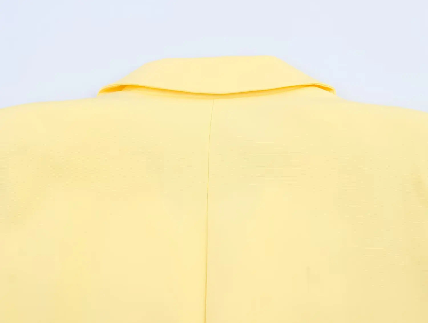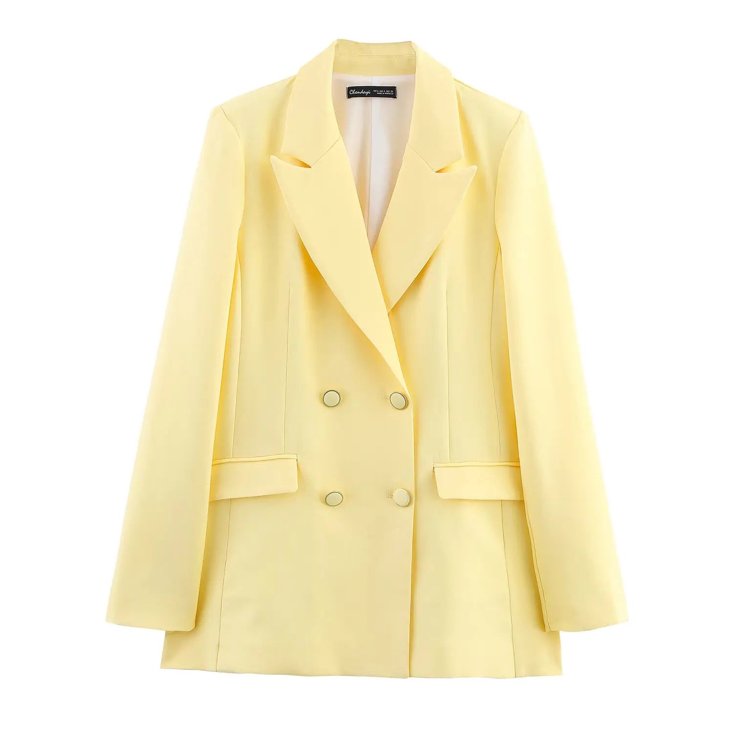 KONDALA Elegant Yellow Blazer Women's Double-breasted Lapel Blazer Fashion High Street 2025 Spring Summer Holidays Commute Suit