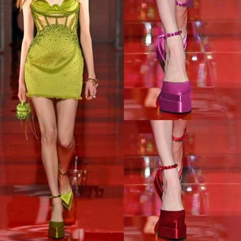 New Brand Women Sandals Summer Shoes Sexy Thick High Heels Platform Black Red Yellow Dress Party Wedding Shoes Woman Pumps