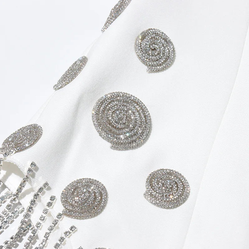 ZMEENNA White Blazer Notched Collar Single Button Patchwork Metal Tassel Jackets For Women 2025 Spring Fashion New Coats ZM628